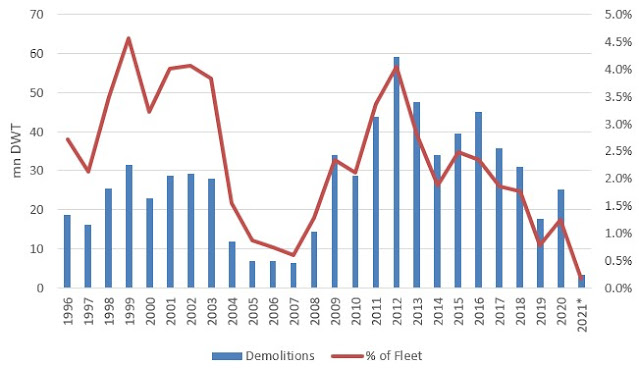 o This in turn puts ambiguity towards ordering a new vessel today resulting in low order book.